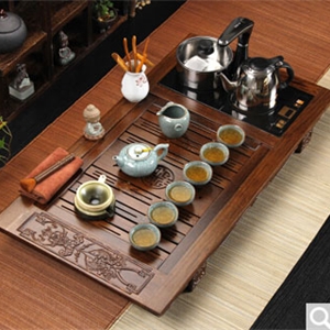 茶具材质:陶瓷 材质:鸡翅木、哥窑 茶盘:87.8cm 宽:45.8cm 高:7.7cm